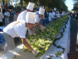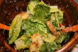 chopped into bite size pieces but left in whole leaves. Caesar felt the natural shape of the leaves is a perfect scoop with a handle so it could be eaten with the fingers. So the leaves were arranged on a plate with the tips to the center and the stem outward for easy grabbing.