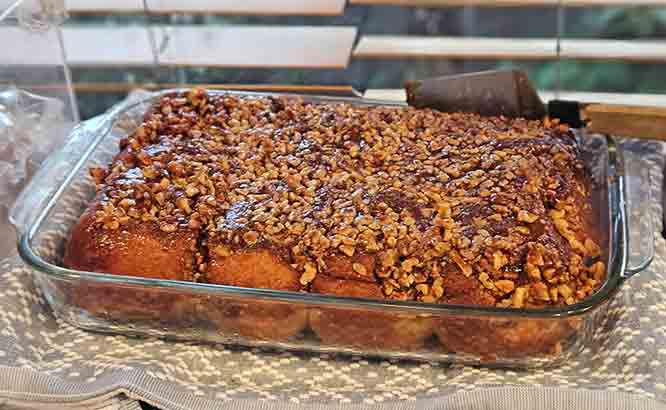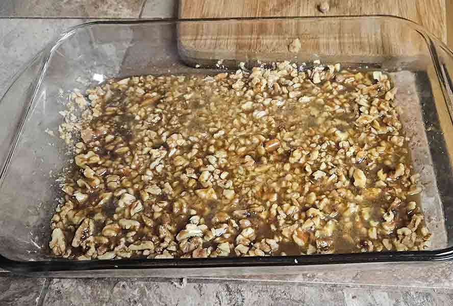 I also like to bake them in a 9 x 13 baking dish with a walnut sticky topping. When you get to the rolled up then you can jump down to here to make the Sticky Buns |