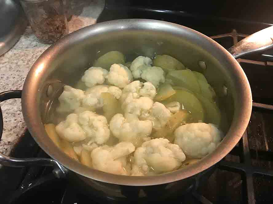 Another lower carb option is to cook half cauliflower and half potatoes.