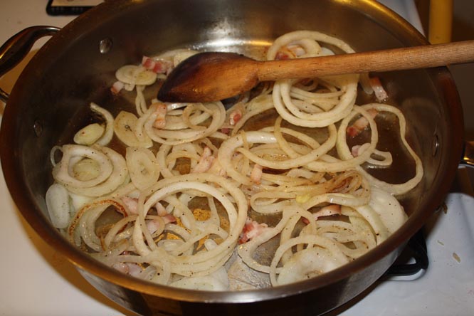 Also slice the onions and chop the bacon.