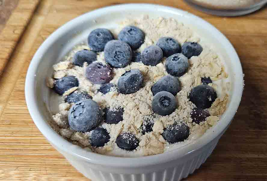Generally I mix 1 egg with 1 cup of cream, yogurt or blended cottage cheese, 1 tablespoon sugar and some