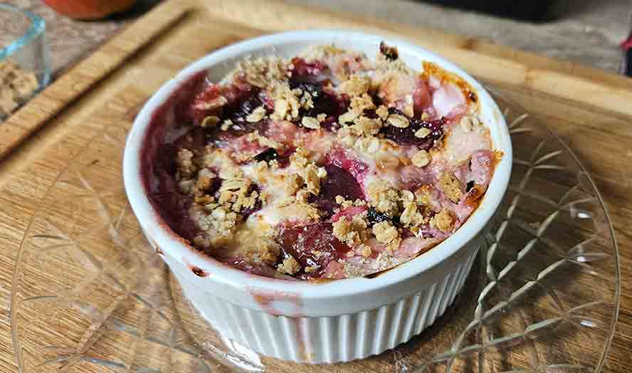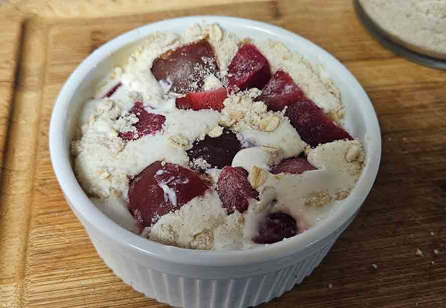 Add a tablespoon or so of Streusel and some more apples to top it.