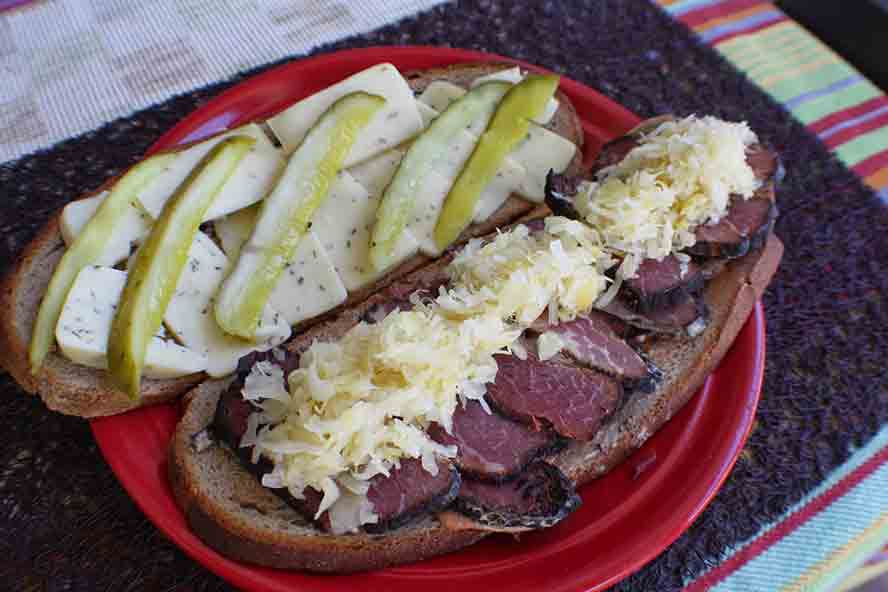 Ingredients like rye bread, corned beef, sauerkraut, and Swiss cheese all reflect this heritage—especially the influence of German and Jewish deli cooking. Sauerkraut and rye are deeply rooted in German cuisine, while corned beef became a staple in Jewish-American communities, particularly in cities like New York.