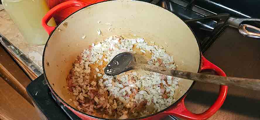 Add the oil and onions and cook till the onions are tender.