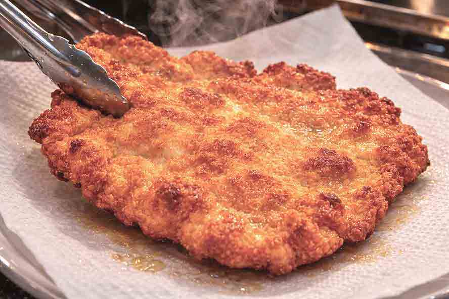 Take the Schnitzel carefully out of the pan and drain it on a paper towel.