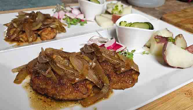 Let the Schnitzels rest on a plate while you chop the onions and heat up the pan.