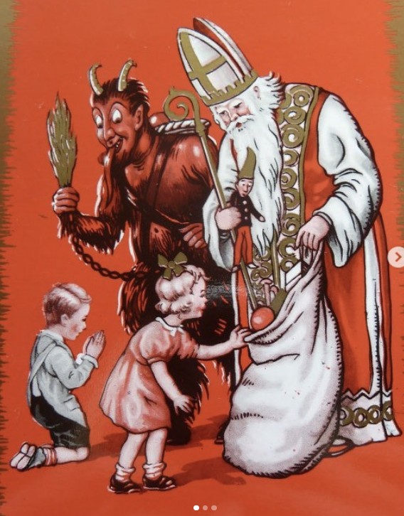 Krampus for the catholic religion that was a horned beast and Belsnickel or Knecht Rupert for the Protestants.
