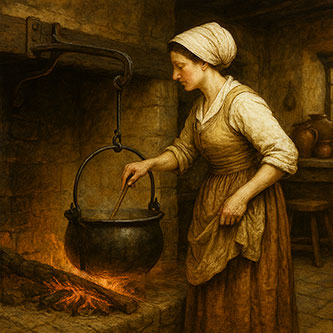where bread was baked in brotforms and soup simmered slowly over the hearth.