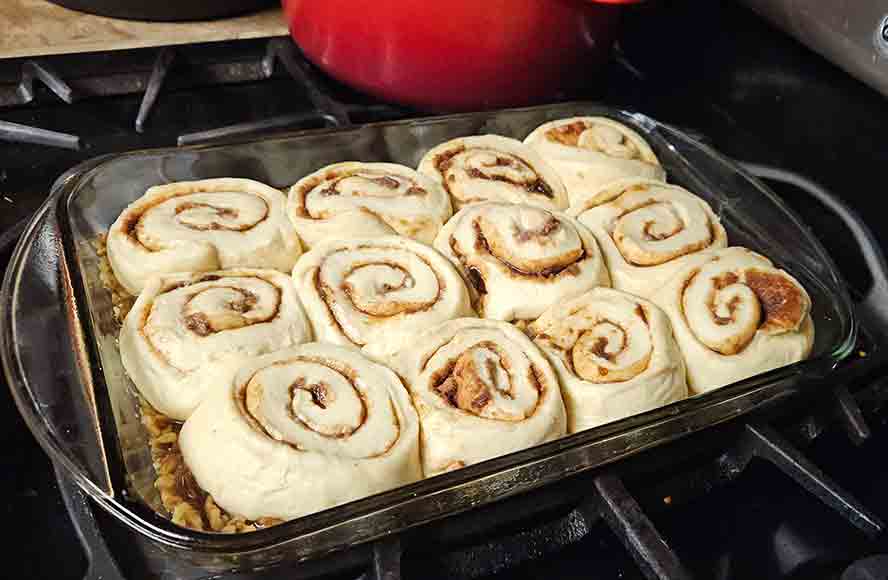 I also like to bake them in a 9 x 13 baking dish with a walnut sticky topping. When you get to the rolled up then you can jump down to here to make the Sticky Buns |