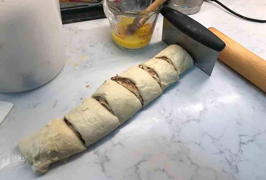 If you are baking them in a 13 x 9 baking dish cut the dough in 12 pieces.