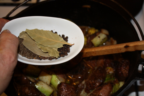 The Bay leaf, peppercorns, caraway seeds, and the another tablespoon of paprika.