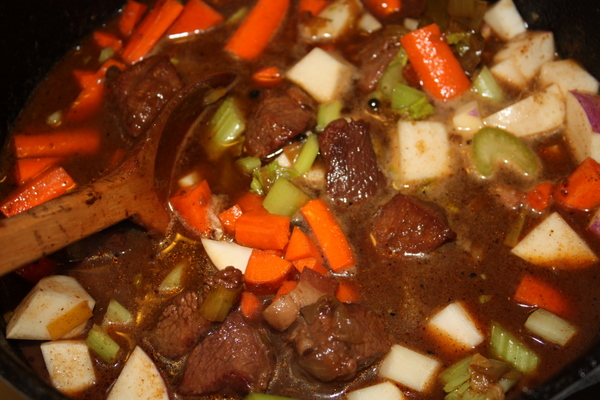 them to turn to mush. Cook for about 30 - 45 minutes till the vegetables and meat