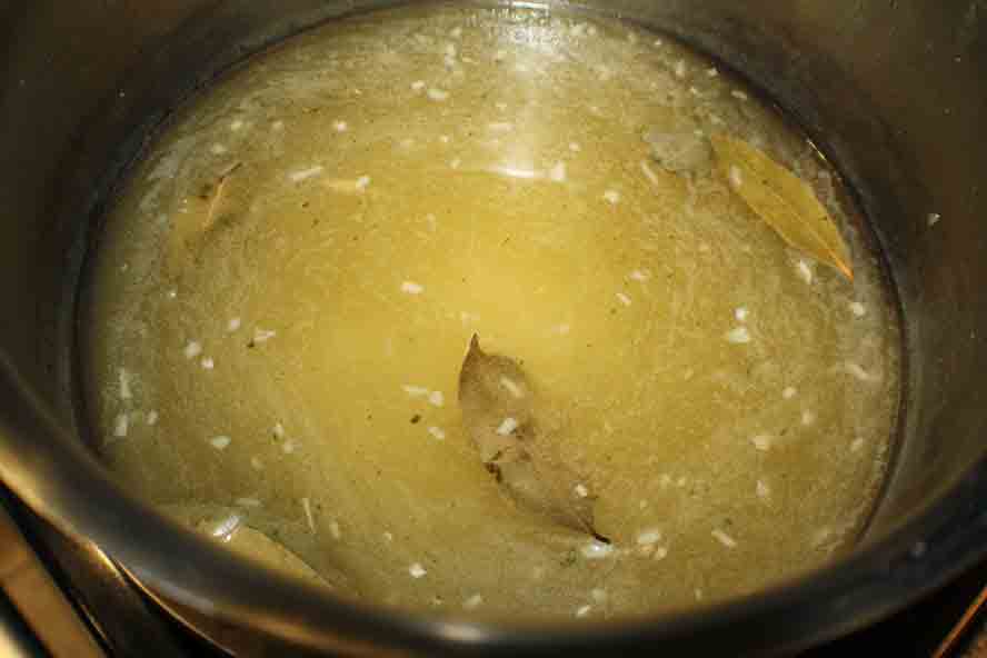 boiling the water, seasoned with salt, bay leaf,