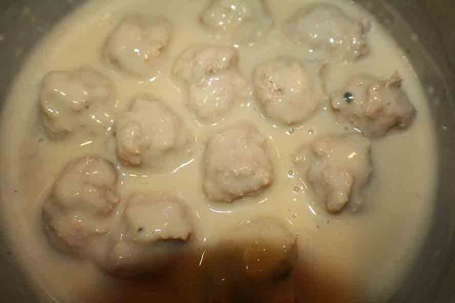 Once the sauce has thickened, add the meatballs.