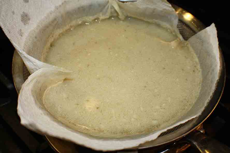I strained the broth through cheese cloth if you have it. This makes the broth clear.