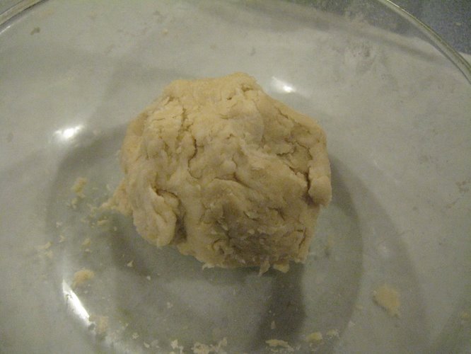 Roll out a small knob of dough, smaller than a golf ball, and roll it very thin into a circle.