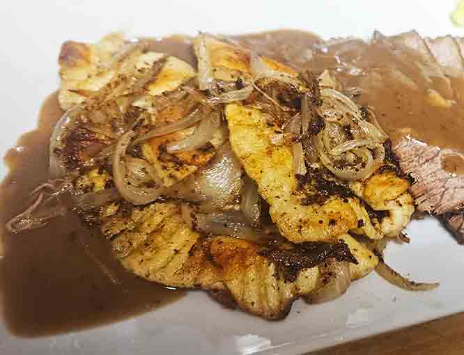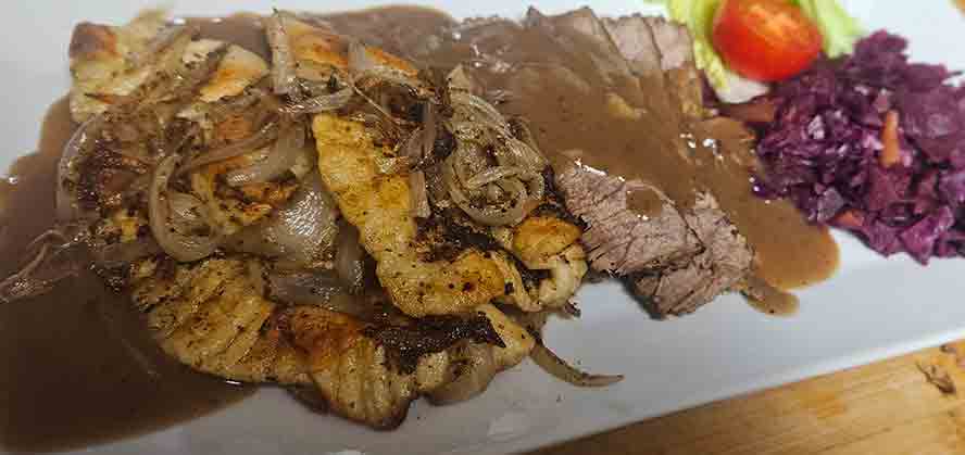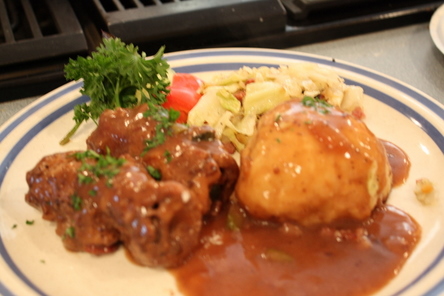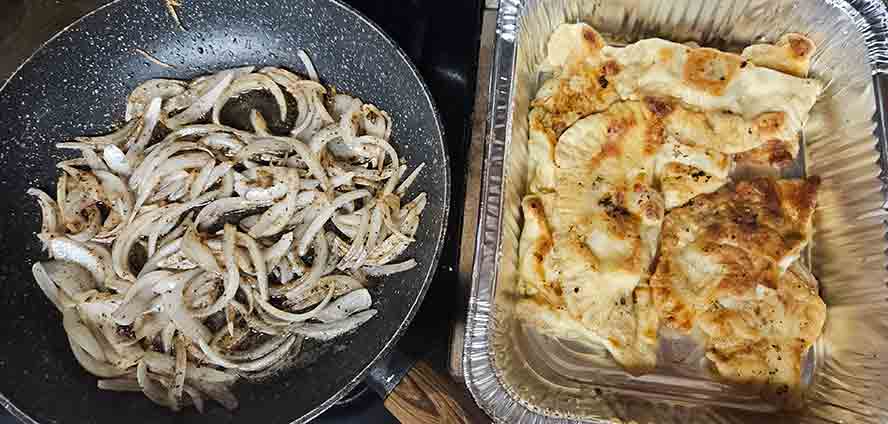 Reserve the Boova Shenkels in a pan and keep warm in the oven while you brown the onions.