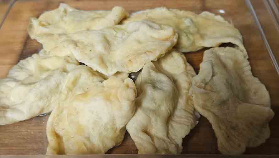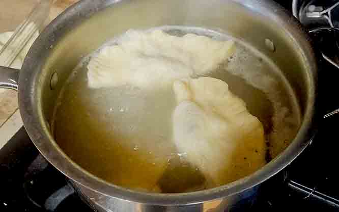 Dip the Boova Shenkels in flour and brown them in the butter.