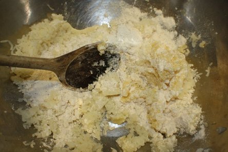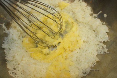 Gently mix the egg into the potatoes,