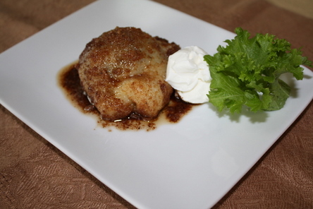 Serve on a plate with sour cream or ice cream and a little of the butter sauce.