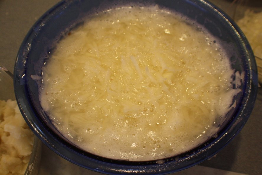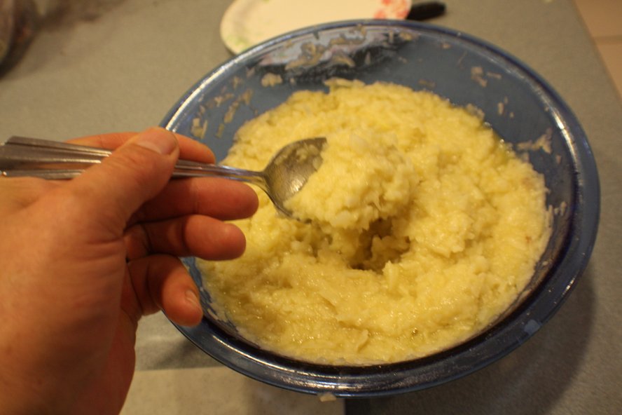 Shred the potatoes on a fine blade grater .If you only have a coarse one