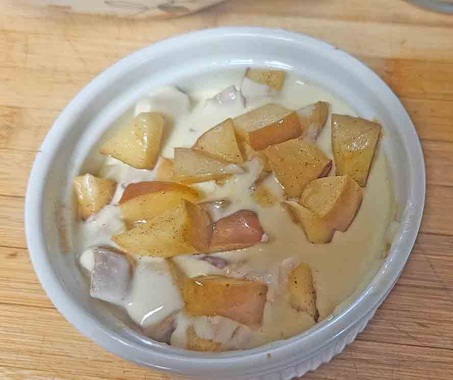 The apple I cut up and baked in the air fryer for 8 min. with some butter and vanilla extract.