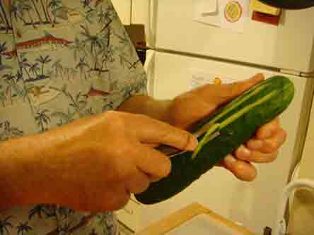 Peel the cucumber or cut part of the skin off. Here I am using a channel Cutter |