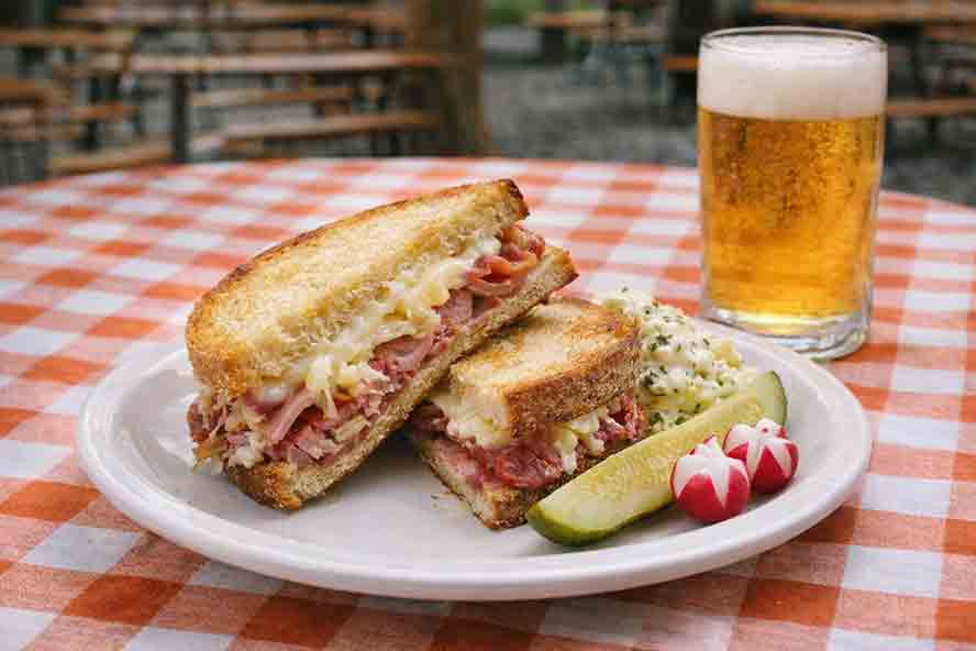 Ingredients like rye bread, corned beef, sauerkraut, and Swiss cheese all reflect this heritage—especially the influence of German and Jewish deli cooking. Sauerkraut and rye are deeply rooted in German cuisine, while corned beef became a staple in Jewish-American communities, particularly in cities like New York.