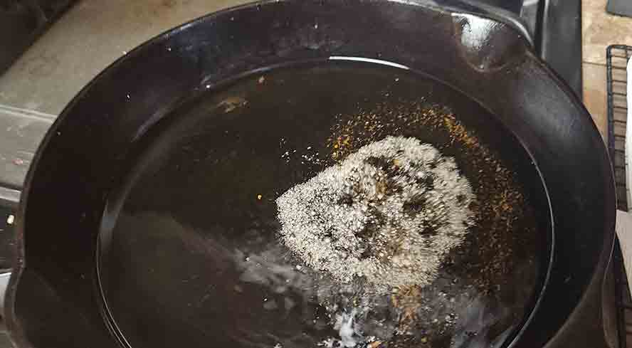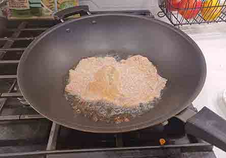 You can tell when it is hot enough by sprinkling in a few crumbs to see if they sizzle.