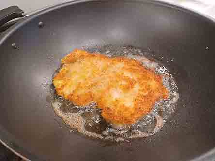 Take the Schnitzel carefully out of the pan and drain it on a paper towel.